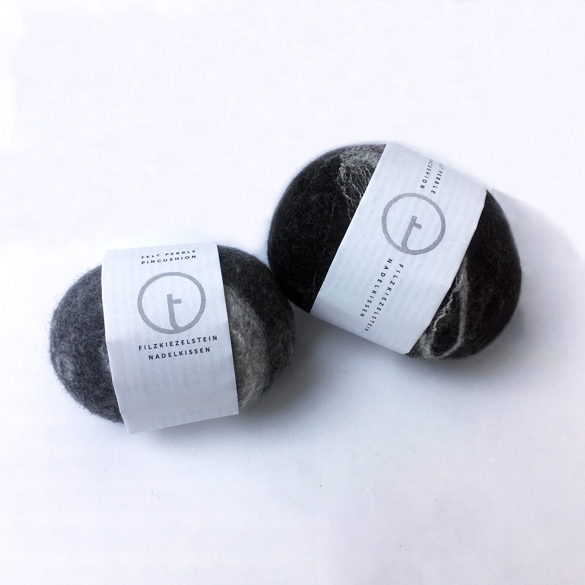 Filz-Nadelkissen gibt es in 3 Größen: Größe L ist in Dunkelgrau, Größe M ist in mittlerem Dunkelgrau. Größe S ist das Armnadelkissen (bald verfügbar!) und in 3 Grautönen erhältlich; dunkelgrau, mittel-dunkelgrau und hellgrau.