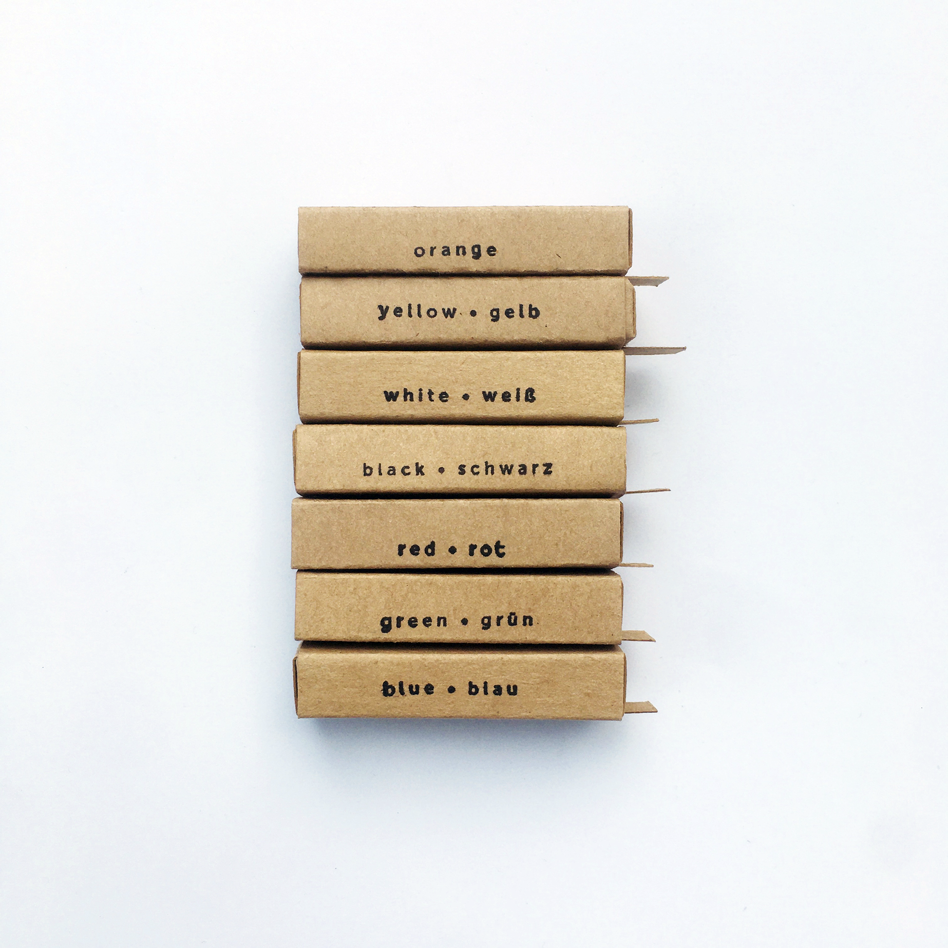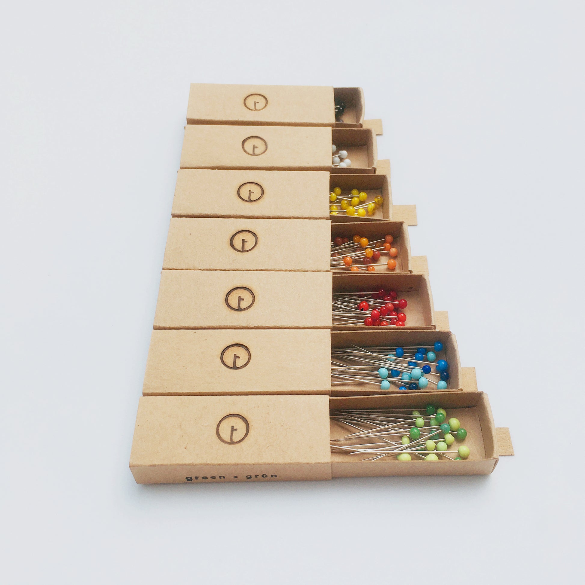 20 Nadeln sind in einer handgefertigten Streichholzschachtel aus Kraftpapier verpackt. Kraftpapier ist ein sehr starkes und haltbares Papier, das zu fast 100 % aus Zellulosefasern besteht, es werden nur geringe Mengen an Stärke, Alaun und Leim hinzugefügt.