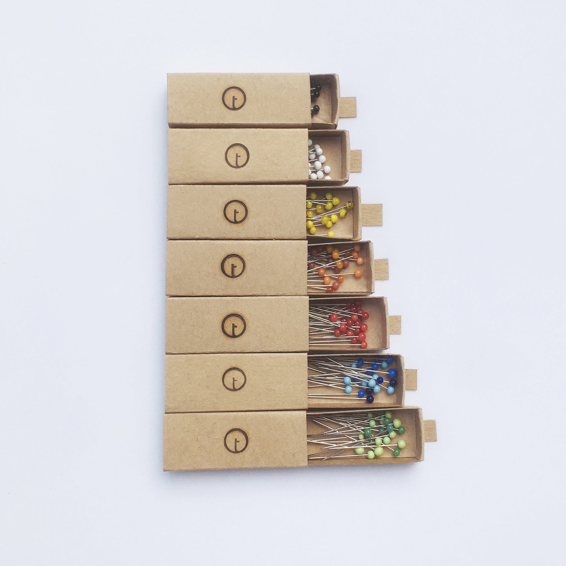 20 Nadeln sind in einer handgefertigten Streichholzschachtel aus Kraftpapier verpackt. Kraftpapier ist ein sehr starkes und haltbares Papier, das zu fast 100 % aus Zellulosefasern besteht, es werden nur geringe Mengen an Stärke, Alaun und Leim hinzugefügt.