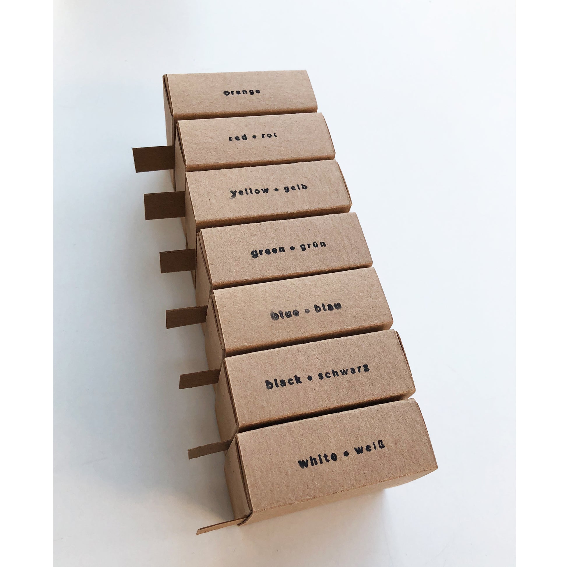 14g Nadeln sind in einer handgefertigten Streichholzschachtel aus Kraftpapier verpackt. Kraftpapier ist ein sehr starkes und haltbares Papier, das zu fast 100 % aus Zellulosefasern besteht, es werden nur geringe Mengen an Stärke, Alaun und Leim hinzugefügt.