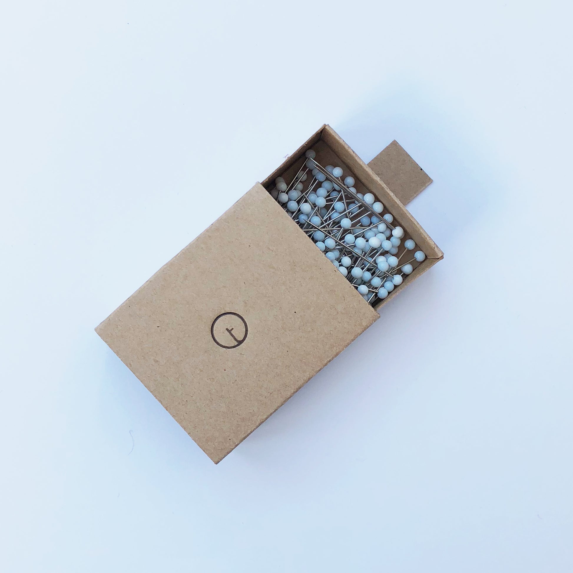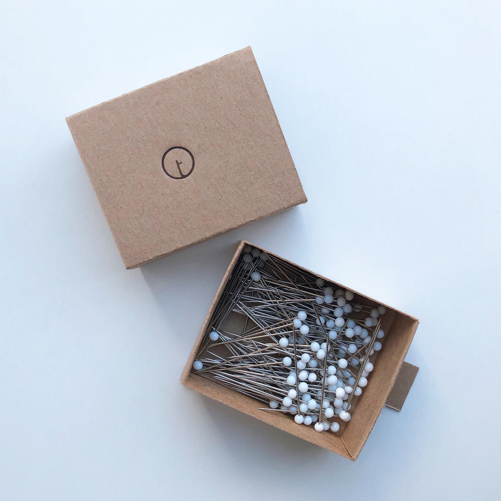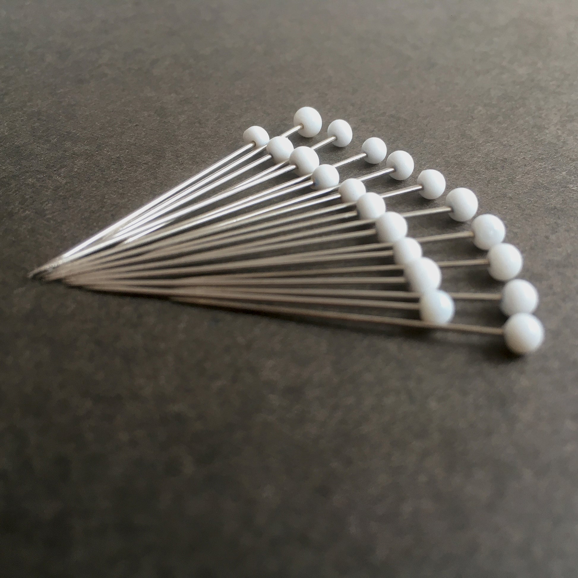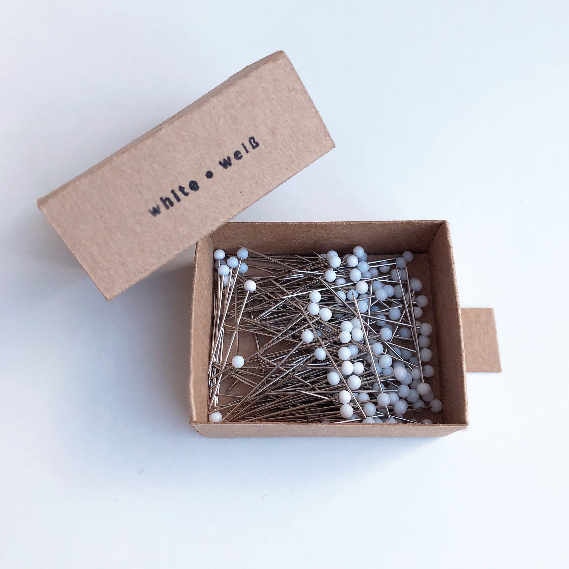 Kleinere Schachtel mit 20 Stecknadeln mit weißem Glaskopf HIER KLICKEN