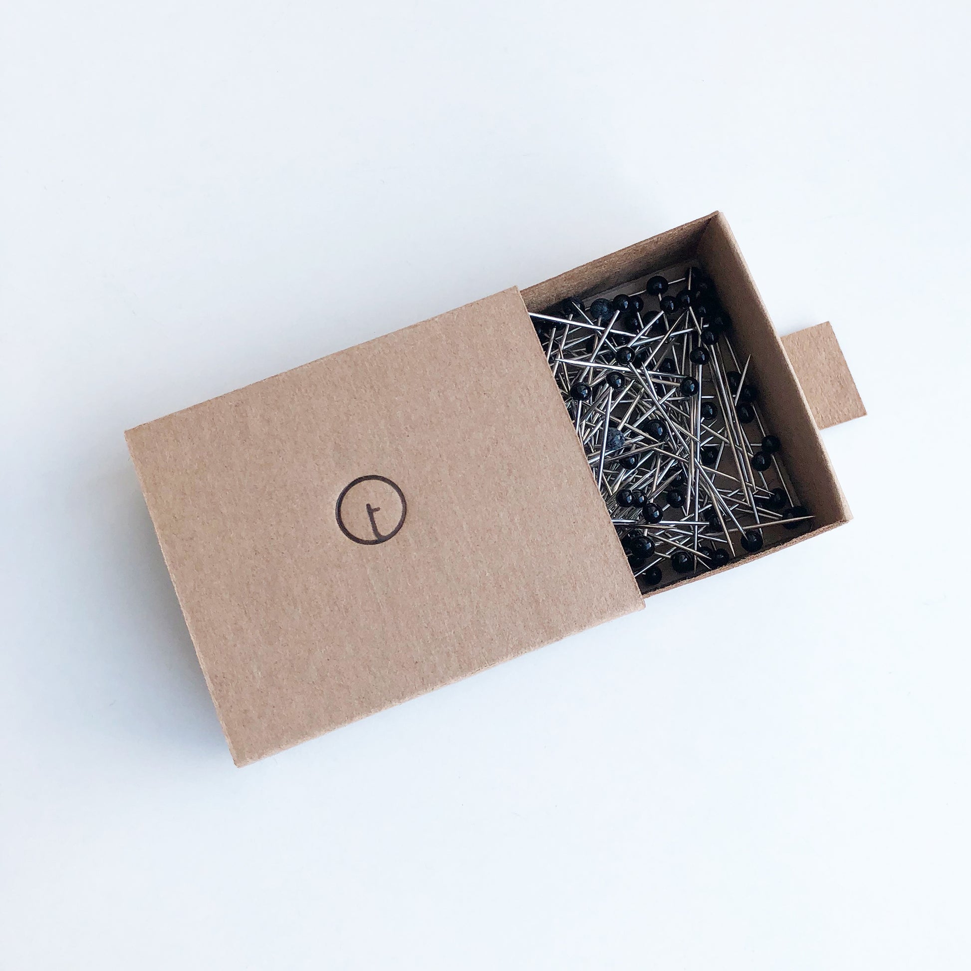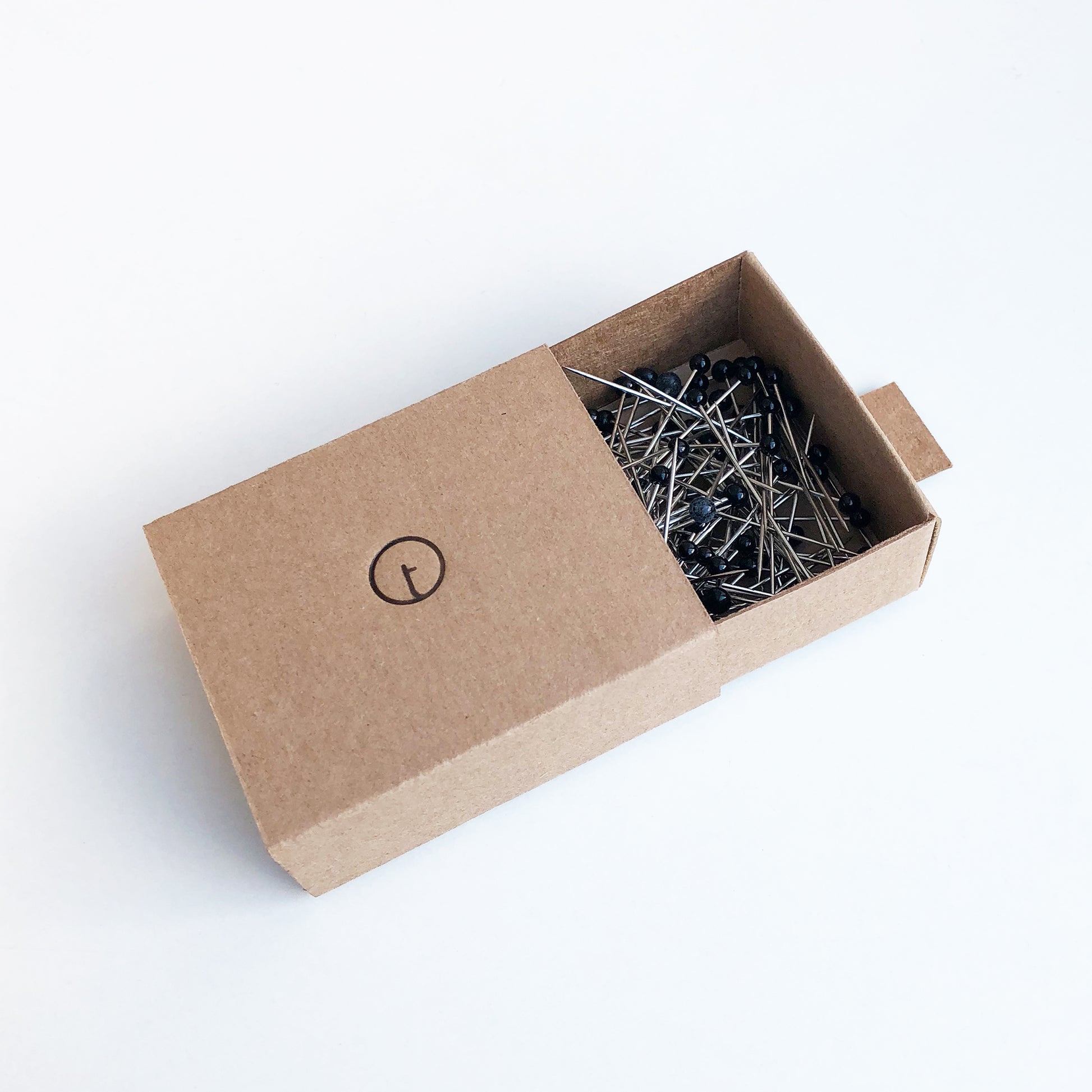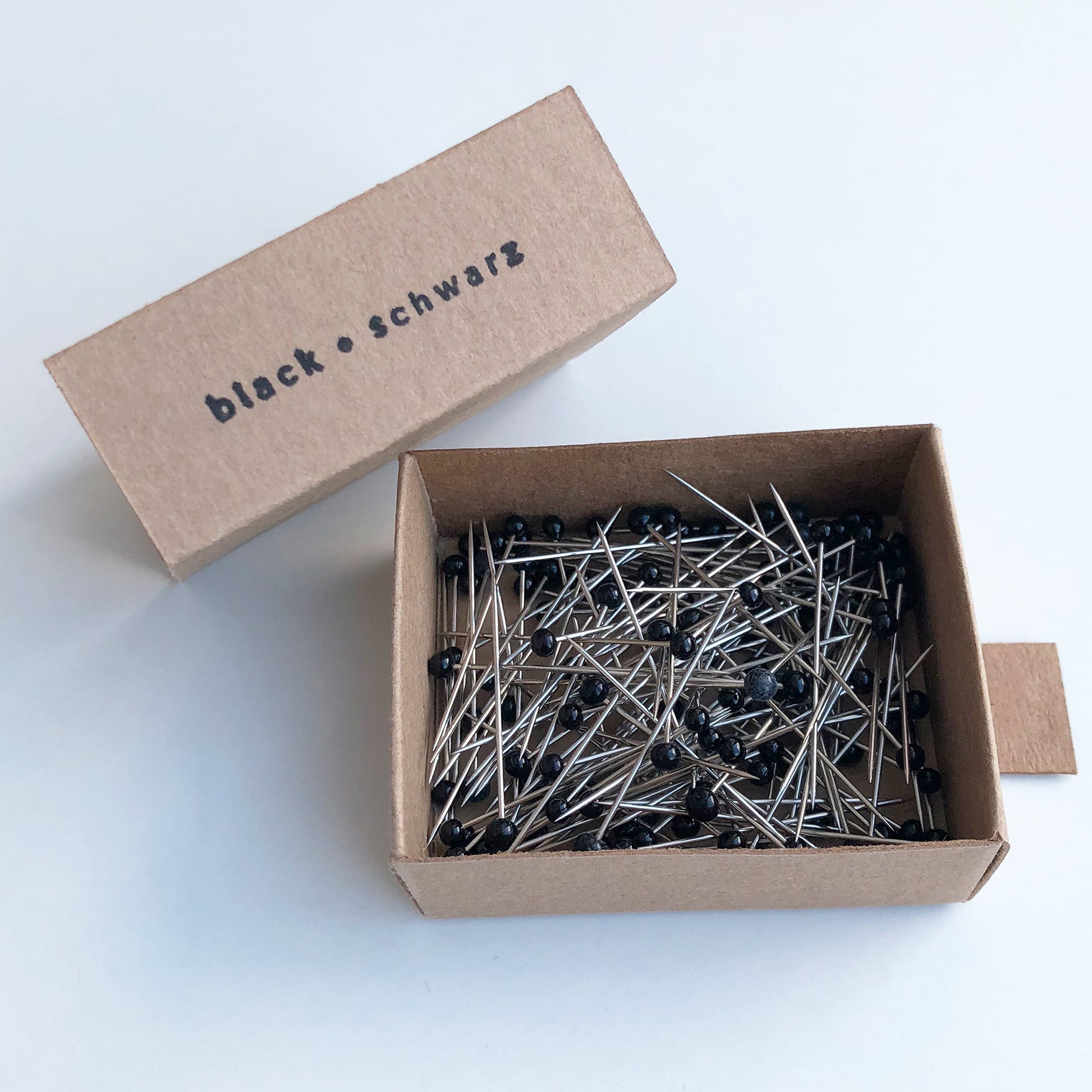 Kleinere Schachtel mit 20 Stecknadeln mit schwarzem Glaskopf HIER KLICKEN