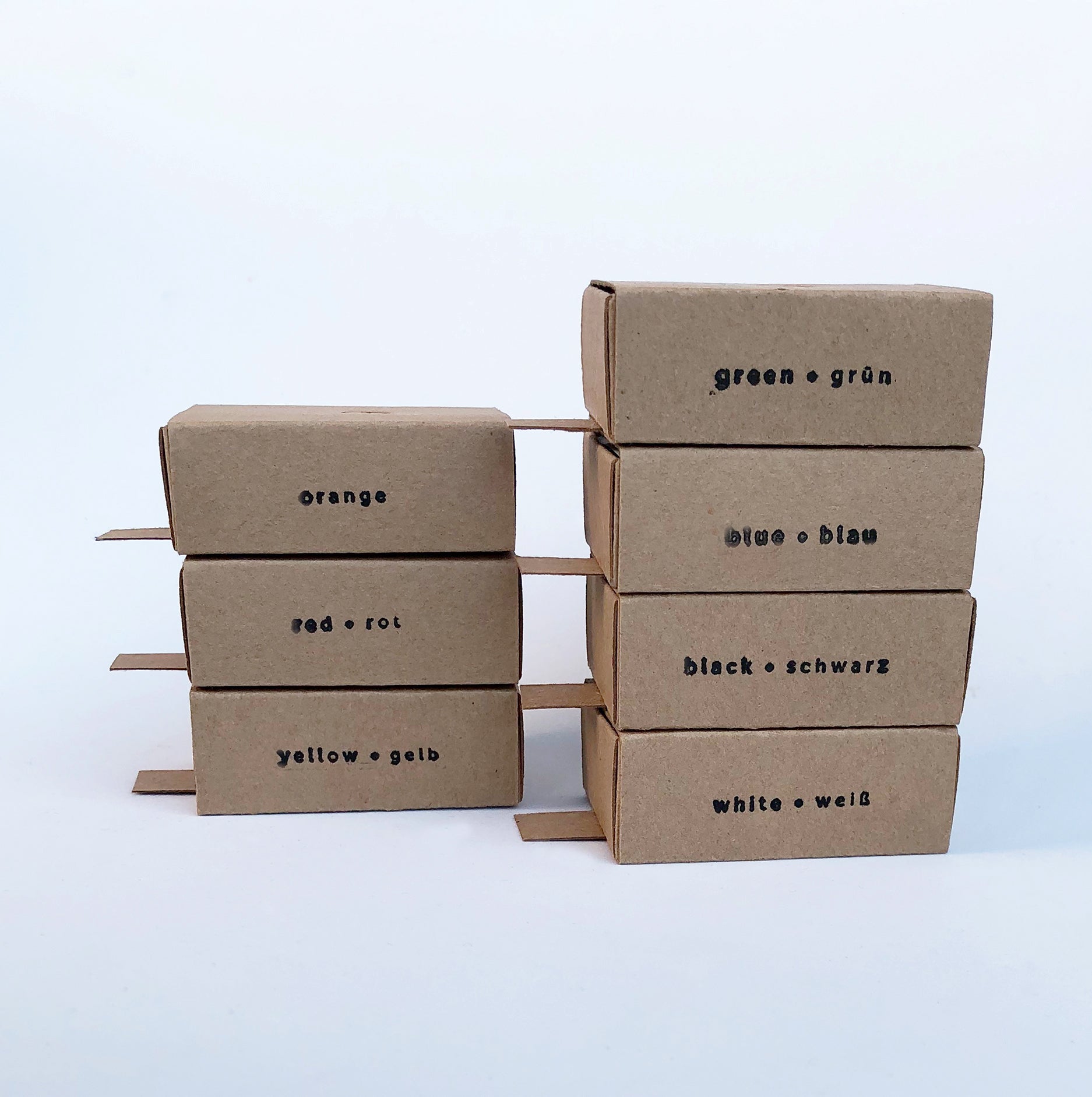 14g of pins are packed in handmade Matchbox out of kraft paper. Kraft paper is a very strong and durable paper made of almost 100% cellulose fibres, only small amount of starch, alum and glue are added.